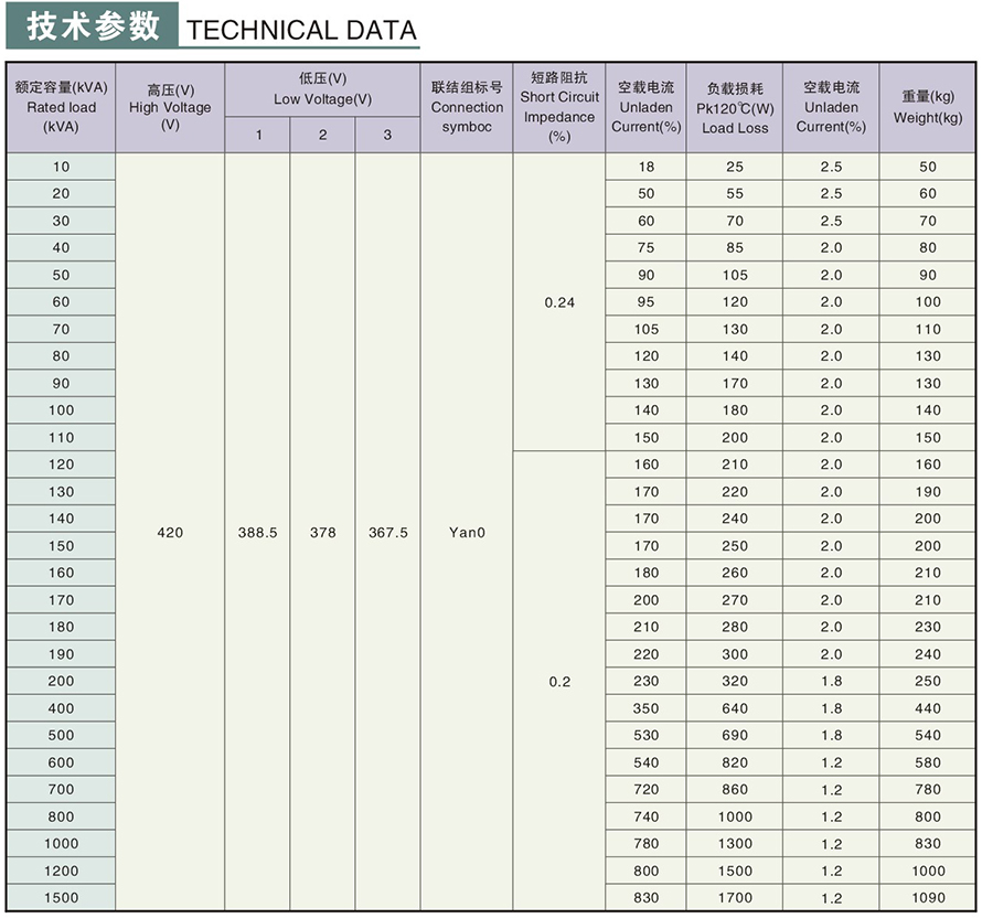 OGS-10/0.5型節(jié)能變壓器